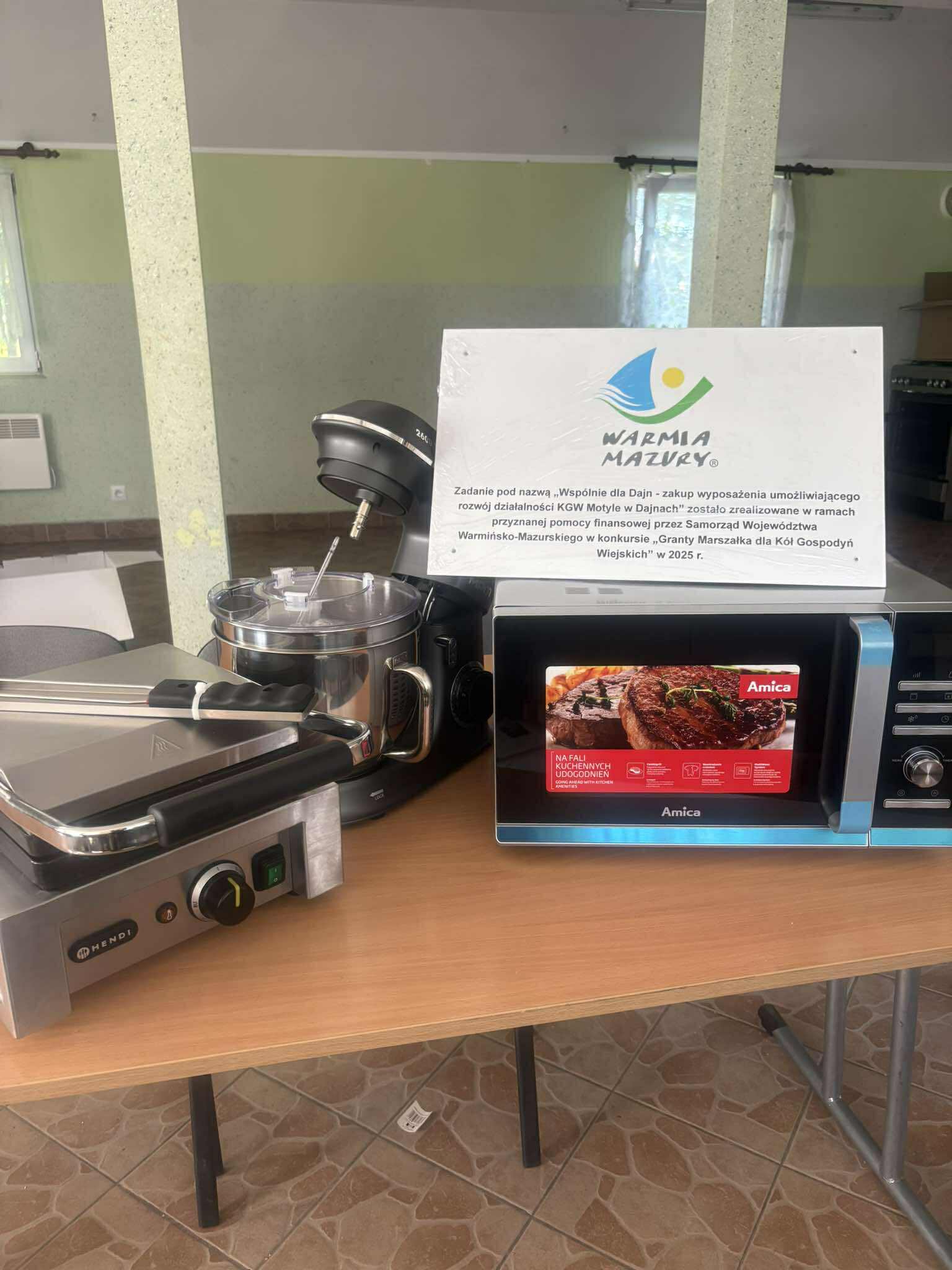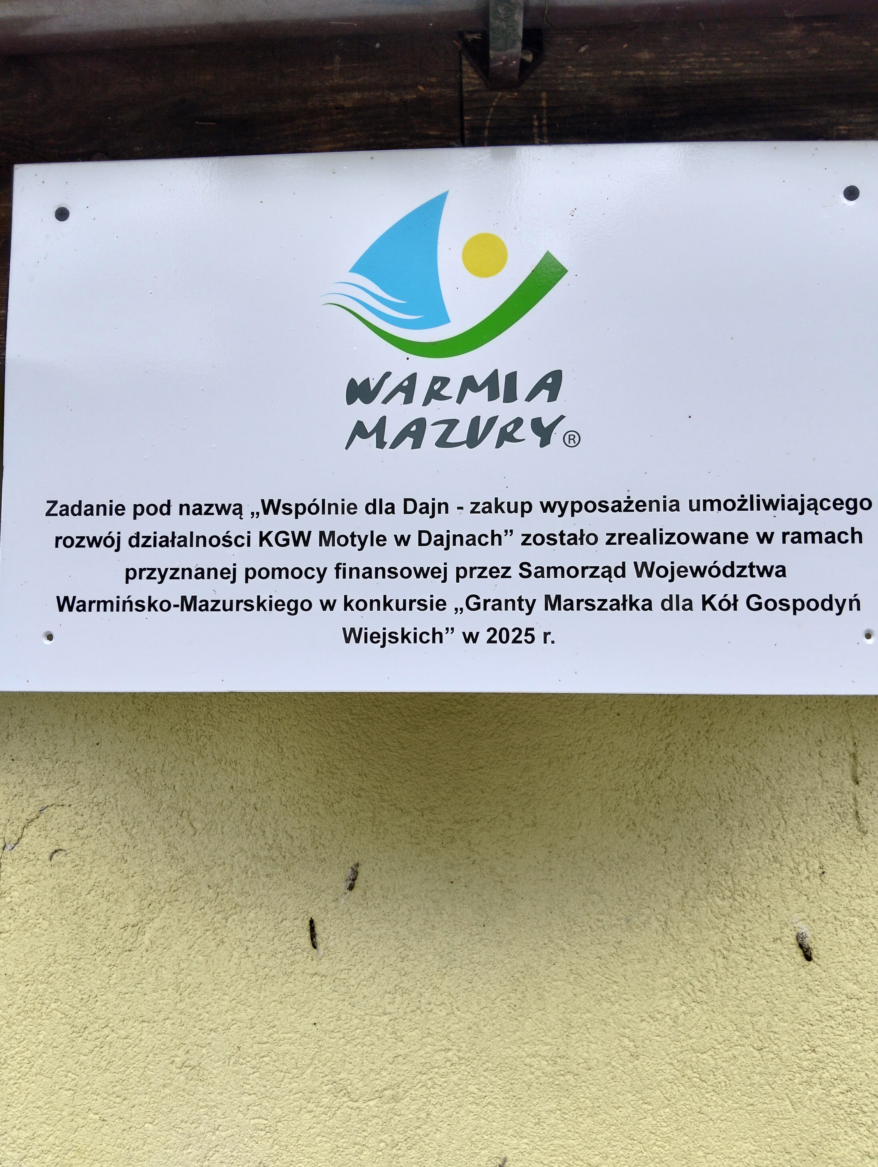 Z dniem 15 listopada 2025 r. nastąpiło zakończenie zadania realizowanego przez Gminę Zalewo wspólnie z Kołem Gospodyń Wiejskim Motyle w Dajnach pn. „Wspólnie dla Dajn - zakup wyposażenia umożliwiającego rozwój działalności KGW Motyle w Dajnach”