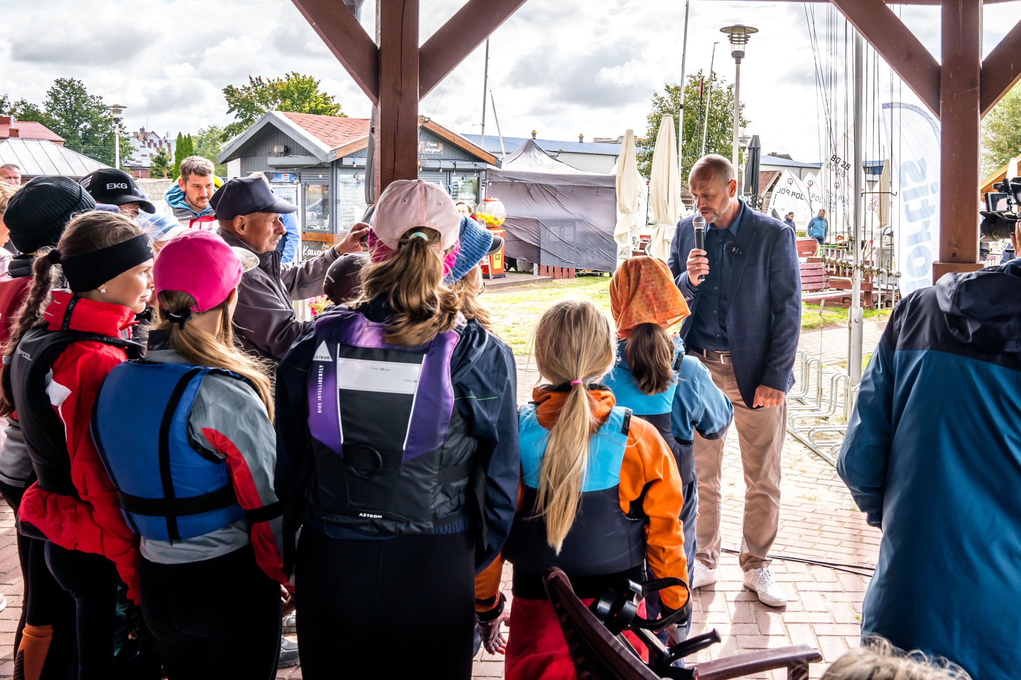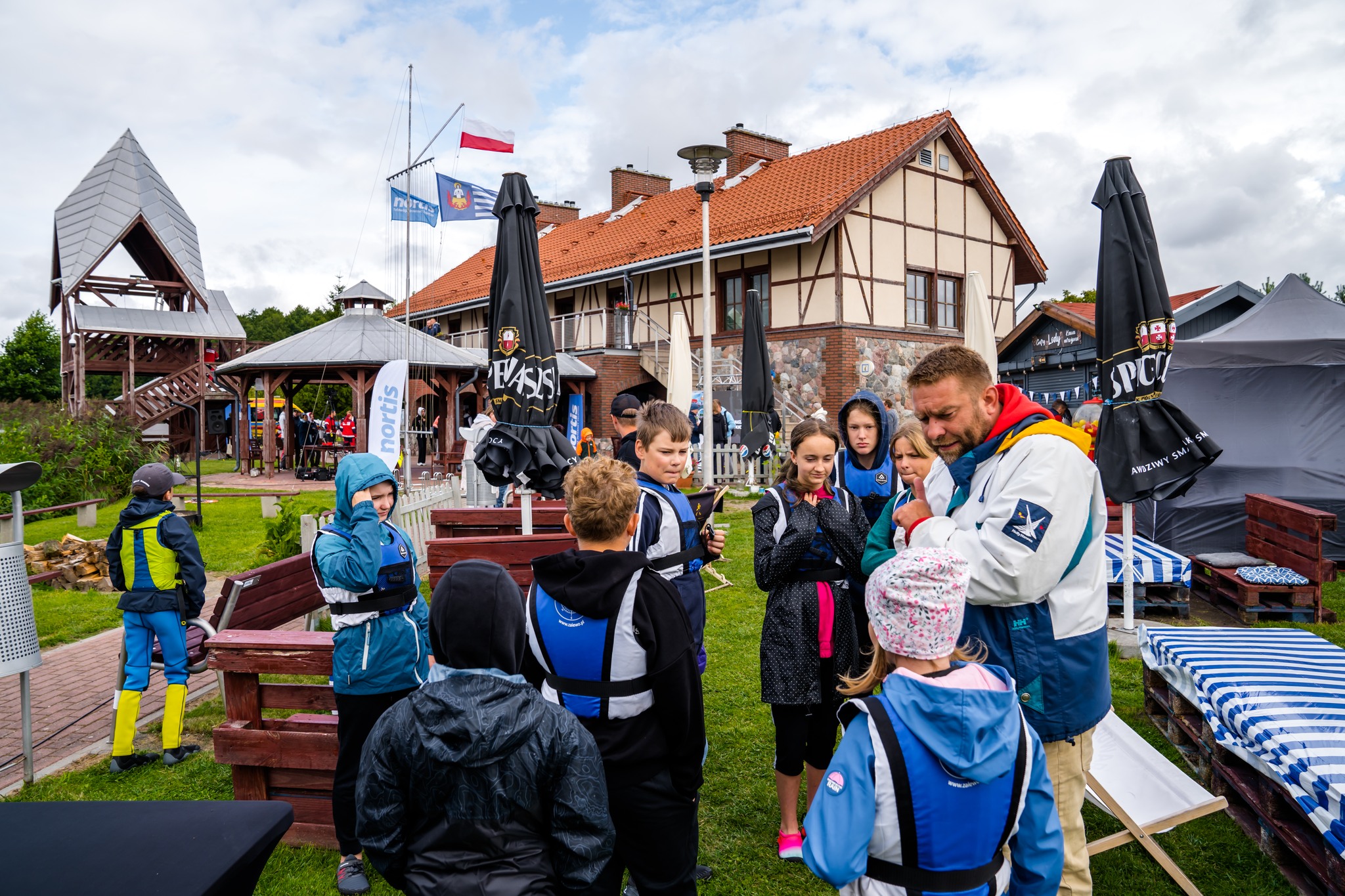 W dniach 23–24 sierpnia 2025 r. na malowniczym Jeziorze Ewingi, przy naszej wspaniałej Ekomarinie odbyły się I Regaty o Puchar Jeziora Ewingi – wydarzenie, które na stałe wpisze się w kalendarz letnich atrakcji Gminy Zalewo. W regatach wzięło udział ponad 80 uczestników, z czego znaczną większość stanowiły dzieci żeglujące na łódkach typu Optymist. Łącznie na wodach jeziora można było podziwiać około pięćdziesięciu jednostek pływających. Mimo kapryśnej aury i zmiennej pogody, uczestnicy nie tracili ducha – przemoknięci, ale uśmiechnięci, dzielnie rywalizowali o zwycięstwo i cieszyli się każdą chwilą spędzoną na wodzie. Uroczystego otwarcia regat dokonał Burmistrz Zalewa Piotr Pietrasik, który również wręczył nagrody wszystkim uczestnikom – dzieciom, młodzieży i dorosłym. Ceremonia wręczenia nagród dla zwycięzców odbyła się 24 sierpnia na scenie letniej, w obecności licznie zgromadzonej publiczności. Nie zabrakło też oprawy kulturalnej – imprezie towarzyszyła muzyka szantowa, występy zespołów szantowych, a wieczorem wspólne karaoke, które zintegrowało żeglarską społeczność i lokalnych mieszkańców. Regaty były transmitowane na jednej z platform streamingowych z lądu i powietrza, jak również na telebimie znajdującym się w naszej Ekomarinie. Serdeczne podziękowania kierujemy do organizatorów, sponsorów, społeczności lokalnej, a przede wszystkim do dzieci, które swoją pasją i zaangażowaniem nadały temu wydarzeniu niepowtarzalny charakter.